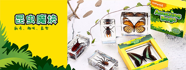 昆蟲魔塊系列產品,是由昆蟲包埋標本配套觀察工具組成。標本晶瑩通透、精致小巧,昆蟲自然真實、栩栩如生,激發(fā)孩子的無限好奇。通過對昆蟲標本的觀察、認知,培養(yǎng)孩子的興趣愛好、觀察能力和探索能力。